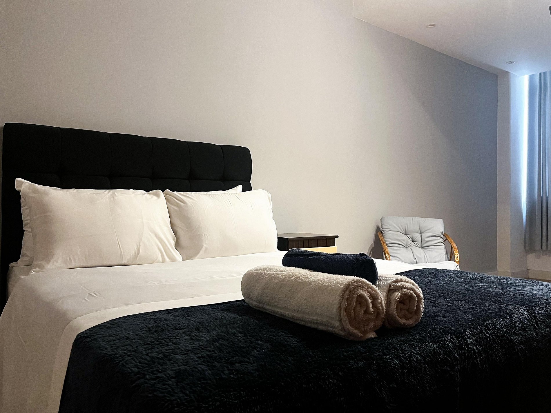 Nosso apartamento possui 2 quartos (sendo um deles suíte), banheiro social, ampla sala de estar, cozinha, máquina de lavar e portaria 24h, oferecendo conforto e segurança durante toda a estadia.