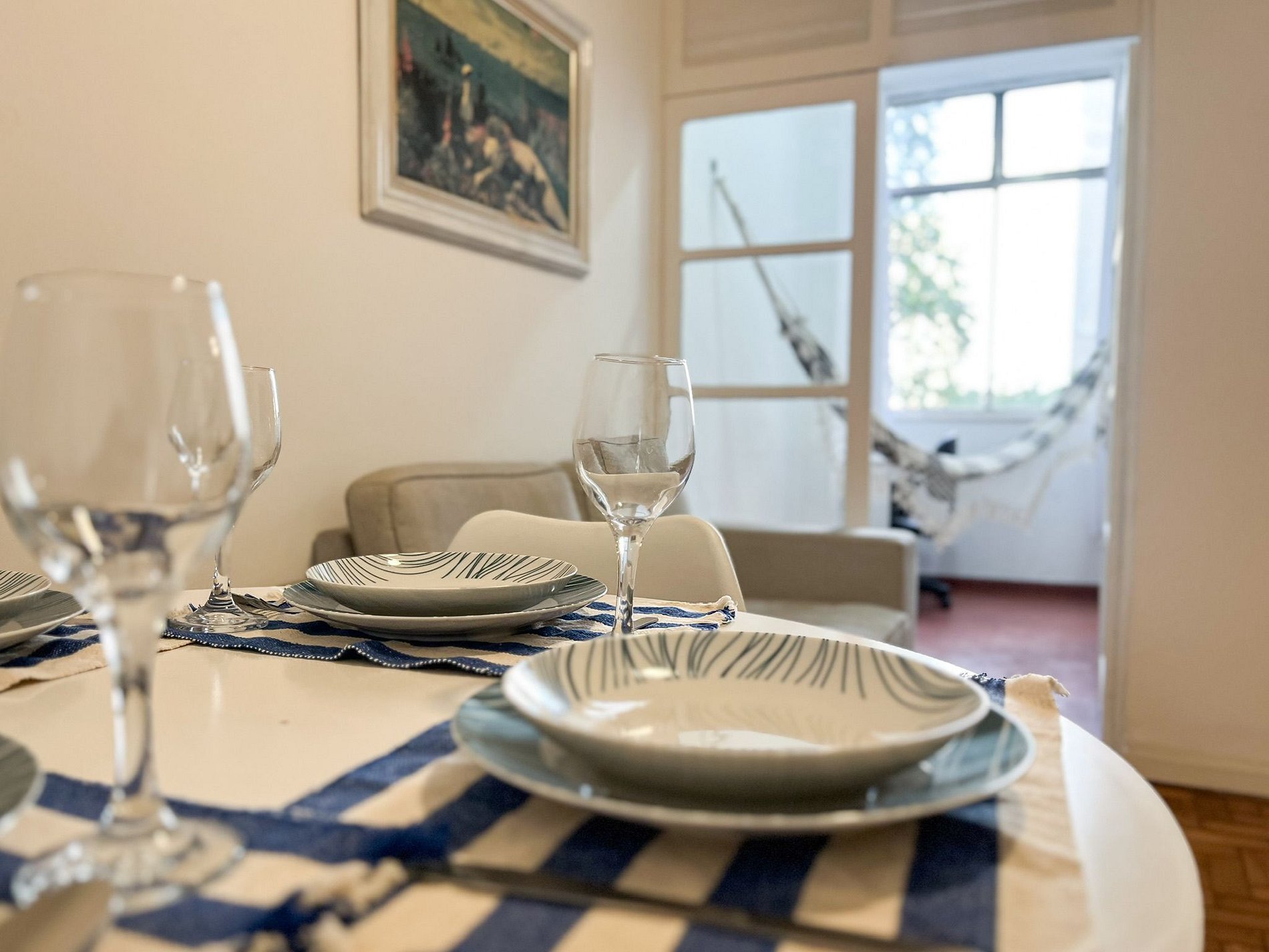 A cozinha tem os utensílios básicos para preparar refeições rápidas, mas se você não gosta de cozinhar, há uma vasta opção de bares e restaurantes nas redondezas, te permitindo viver toda a vibração carioca para aproveitar ao máximo a sua viagem.