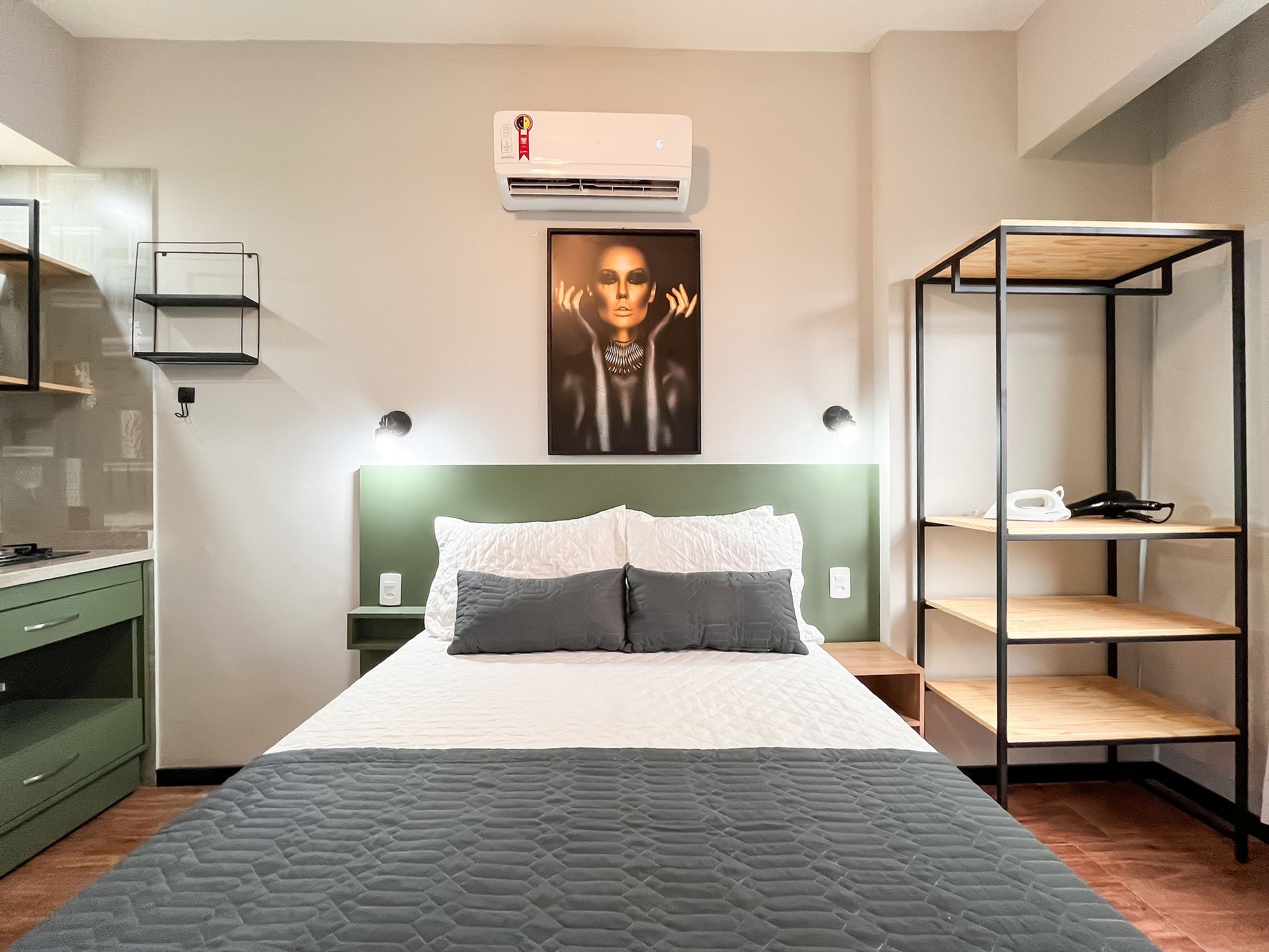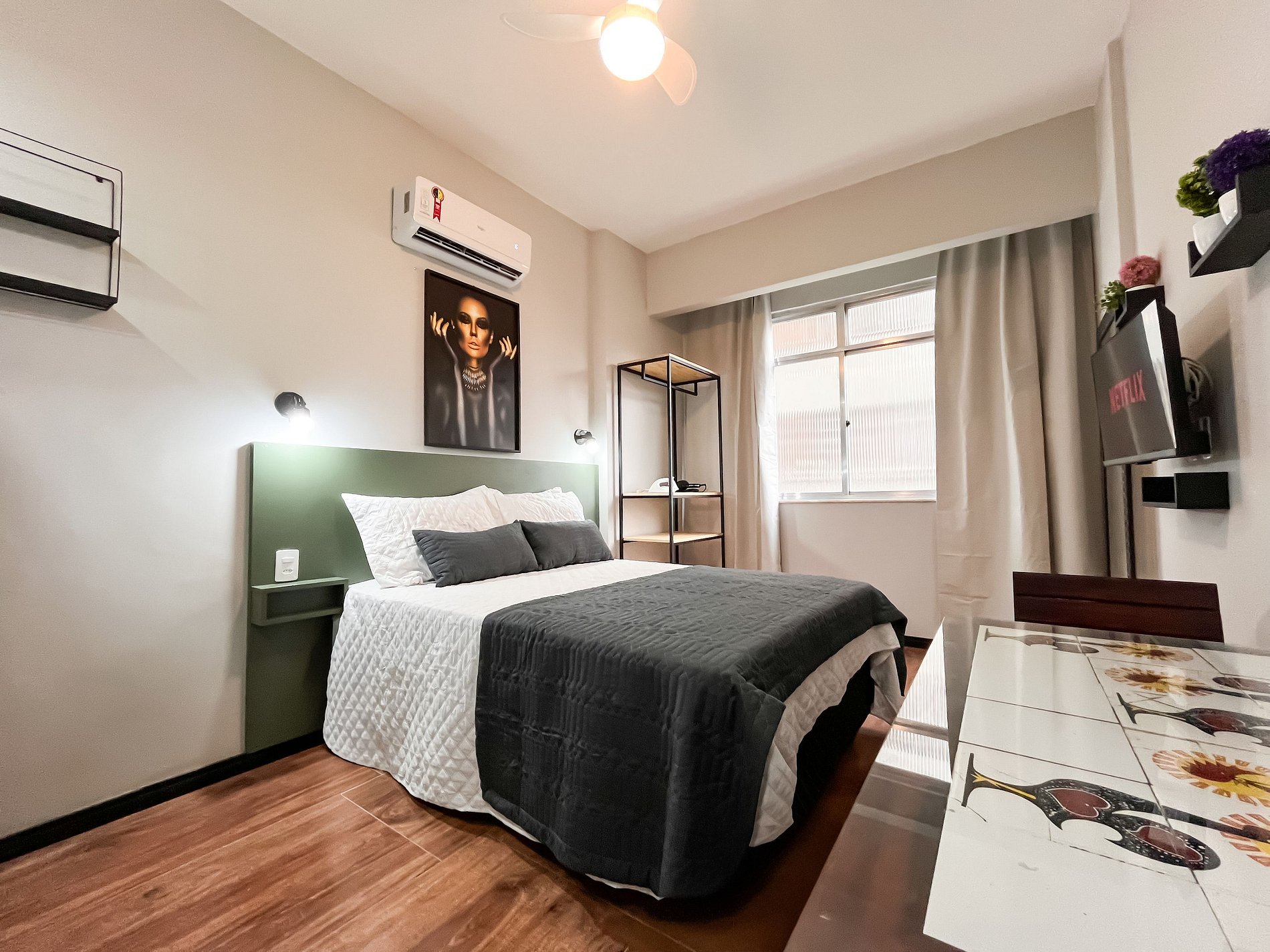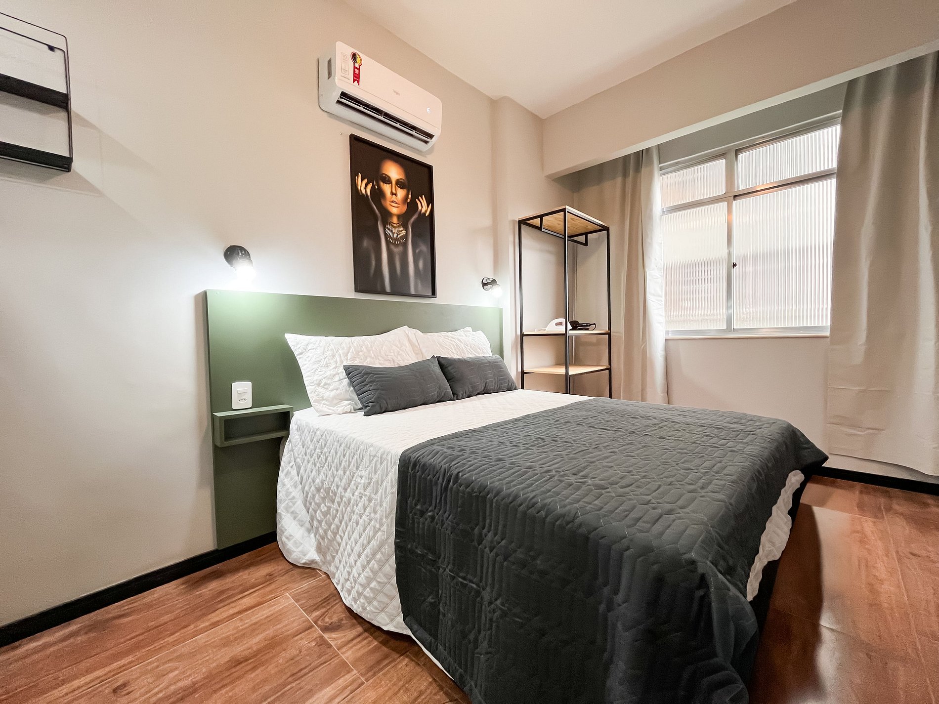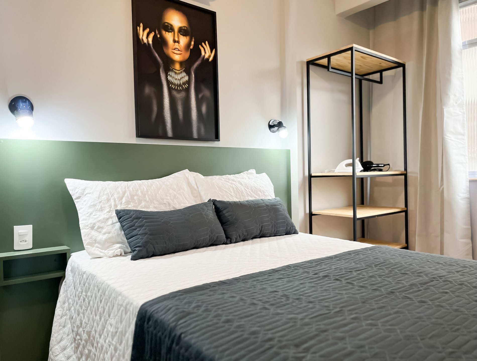 O espaço acomoda confortavelmente até duas pessoas, sendo perfeito para casais, viajantes a passeio ou a trabalho.