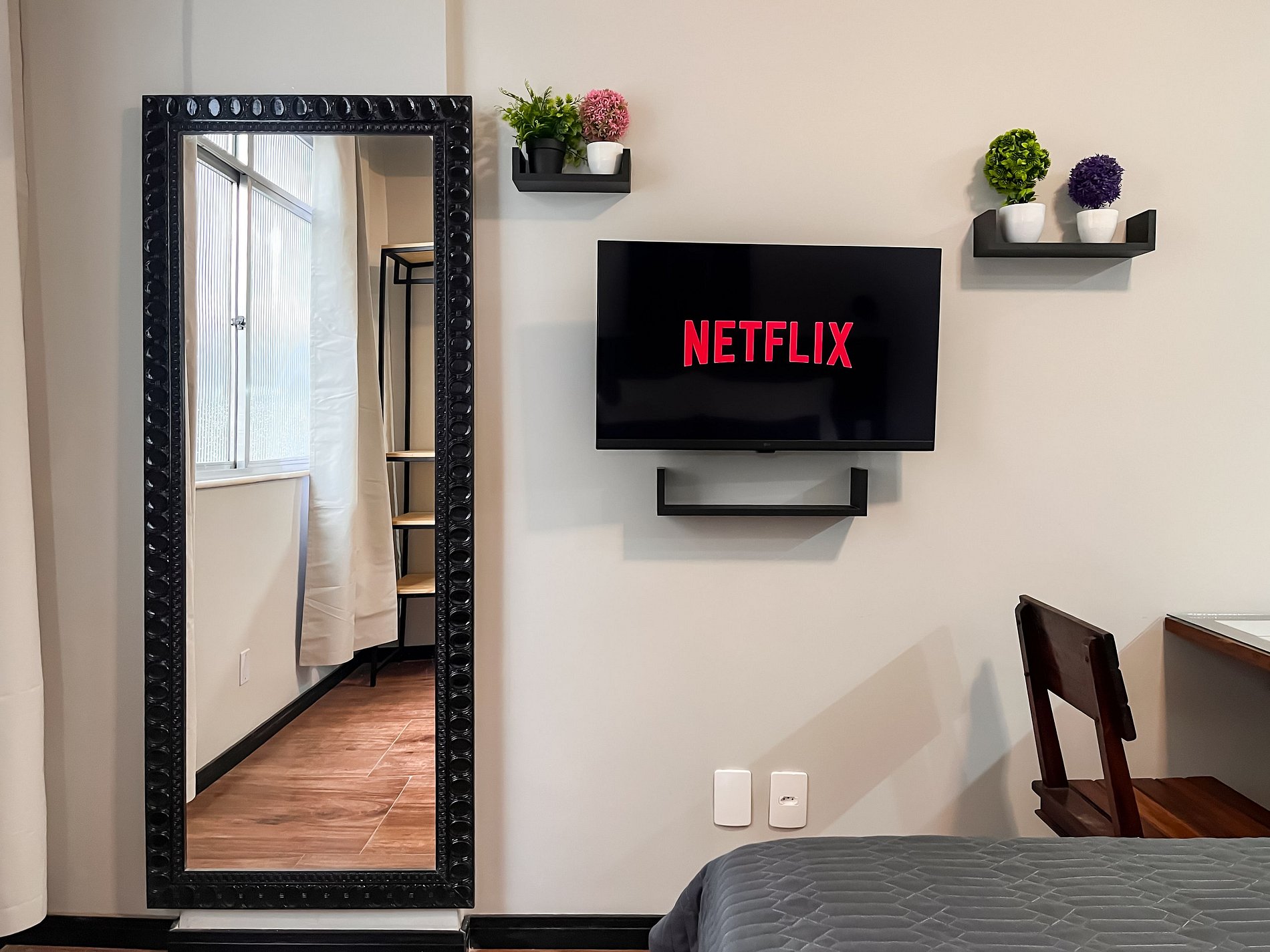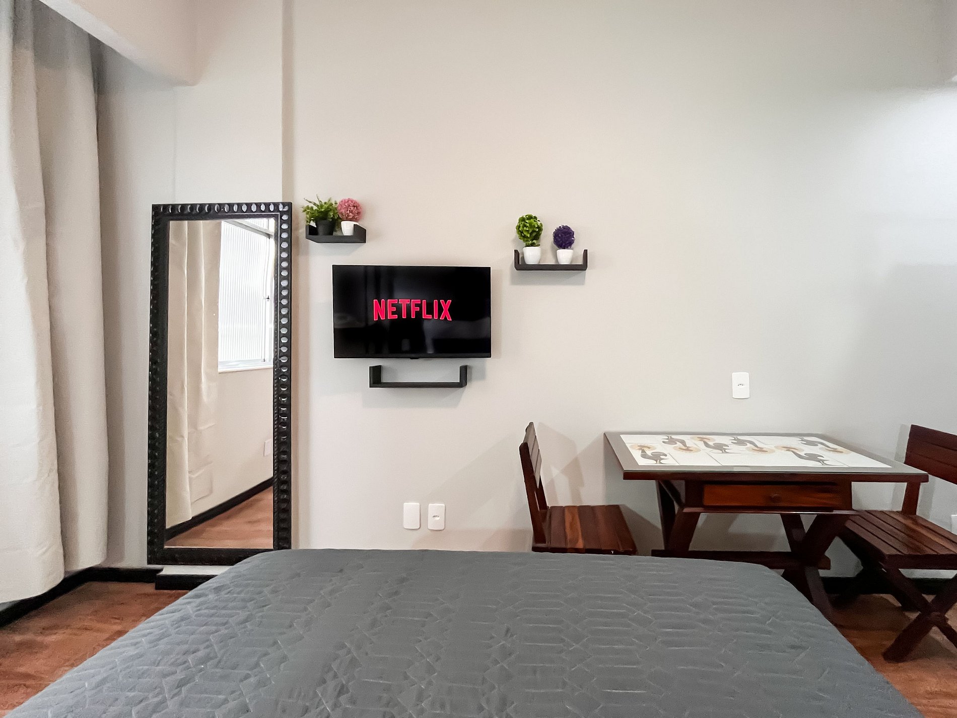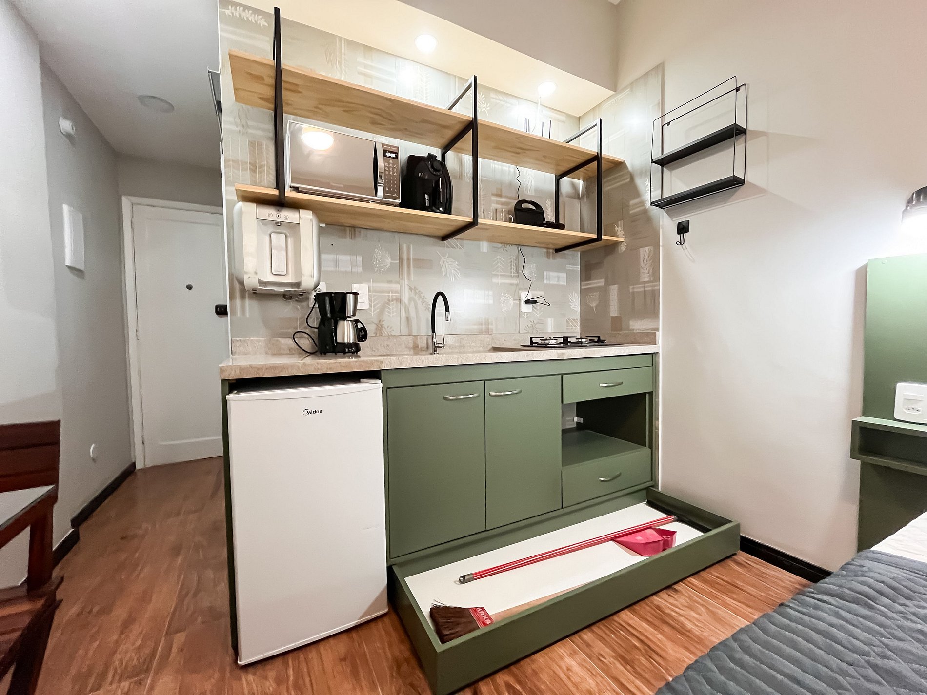 A estrutura do prédio oferece ainda mais conveniência: portaria 24 horas, fechadura eletrônica para check-in fácil e seguro, além de um mercadinho interno com itens básicos — perfeito para emergências.