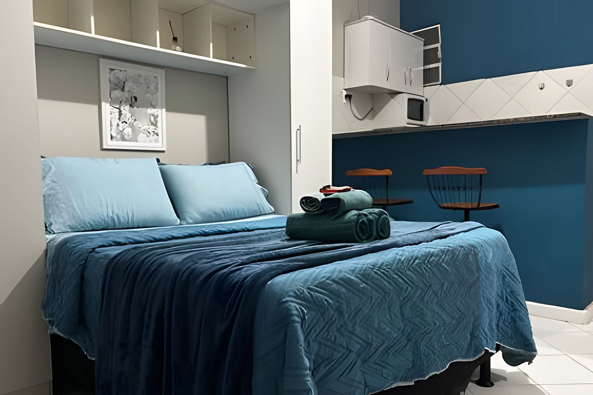 Compacto e aconchegante, esse studio oferece tudo o que você precisa para uma estadia prática e agradável.