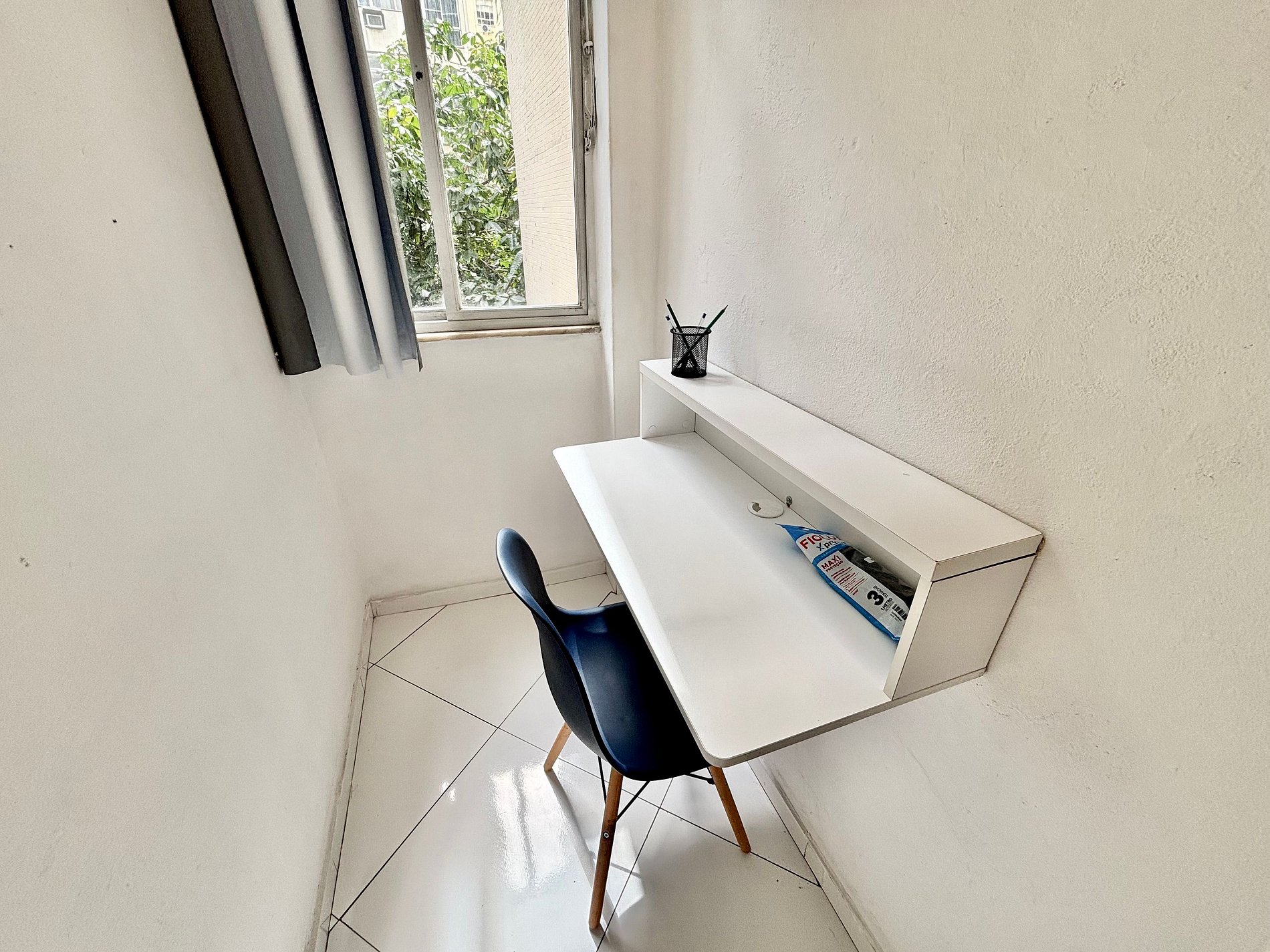 Ideal para até 3 pessoas, o espaço também conta com uma área dedicada para o Home Office, tornando-o a opção perfeita para quem busca uma estadia produtiva e confortável no Rio de Janeiro.