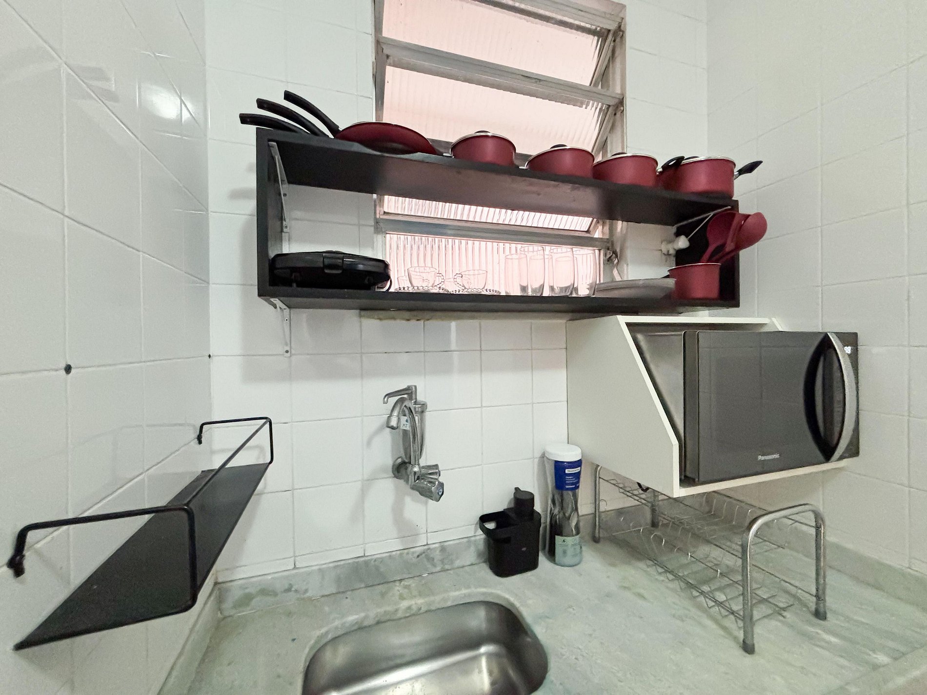 A cozinha é compacta, porém totalmente equipada com os utensílios necessários para que você consiga realizar uma bela refeição após um dia de passeio pela cidade maravilhosa.