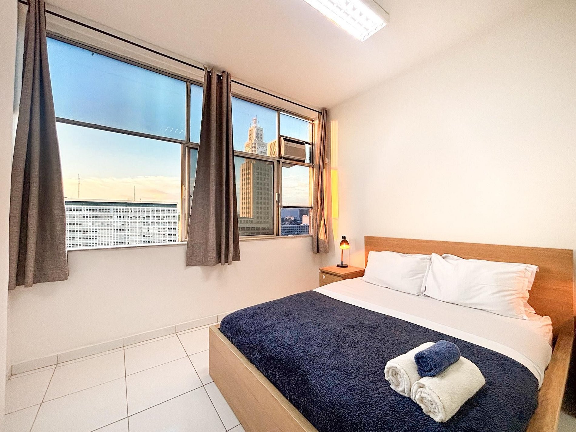 Hospede-se em um studio moderno e confortável no coração do Rio de Janeiro, com vista exclusiva para um dos ícones da cidade: o relógio da Central do Brasil.