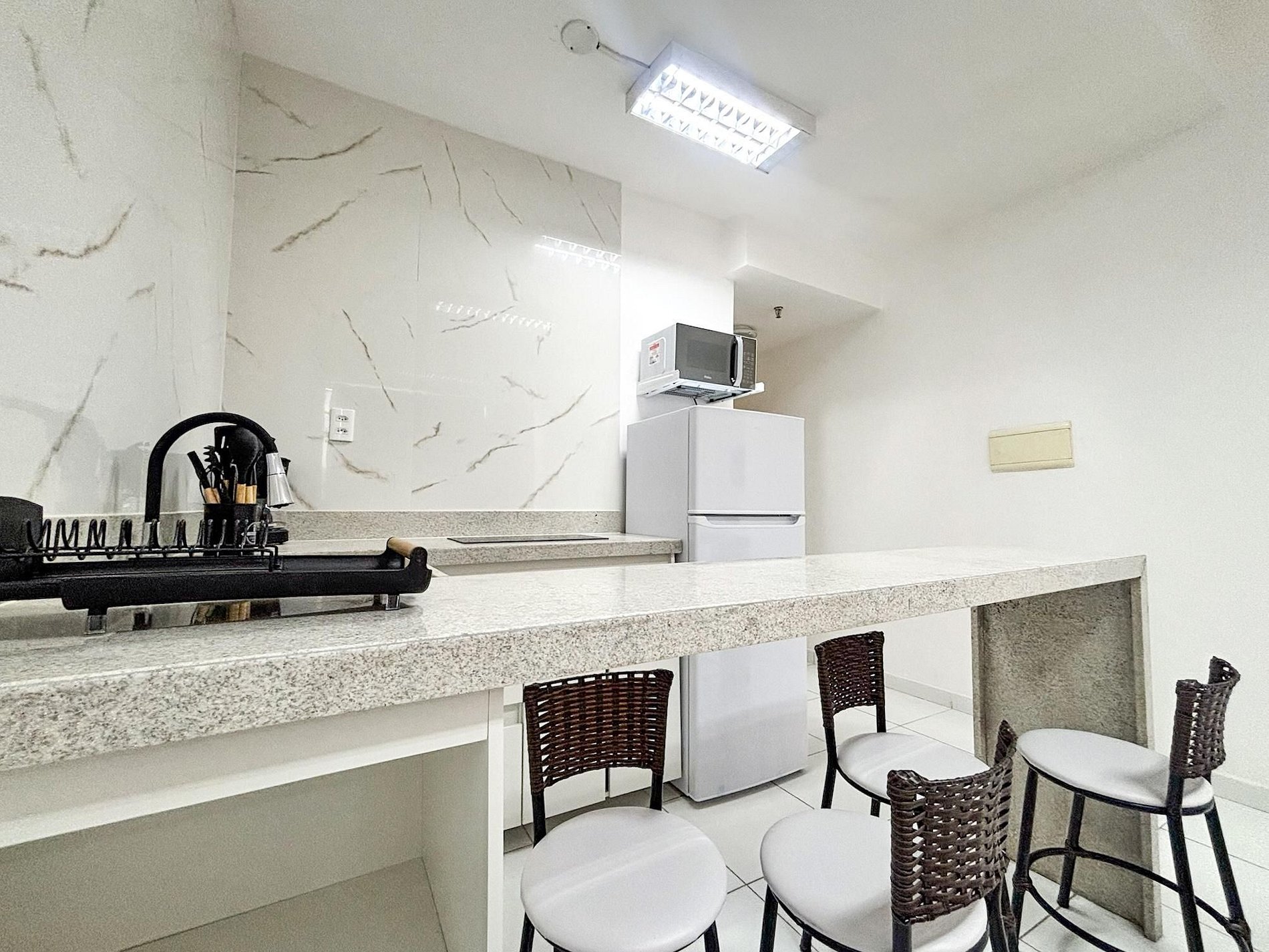 Além de ser um apartamento super aconchegante, o prédio possui um atrativo a parte, pois há uma portaria 24horas, lavanderia paga, mini mercado e um incrível lounge no segundo andar onde você pode esperar confortavelmente até o horário do seu check in.