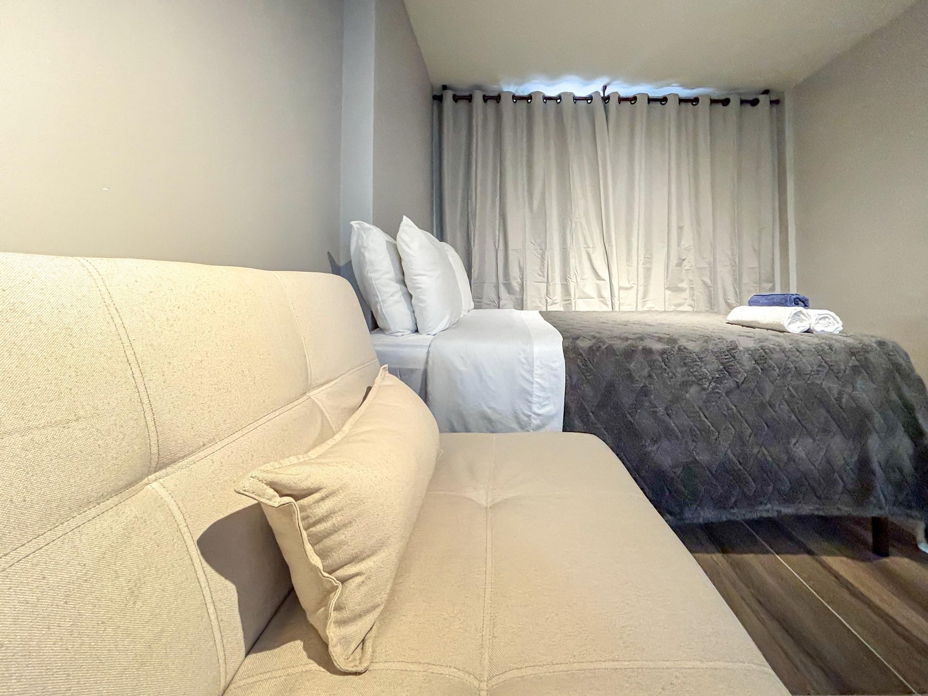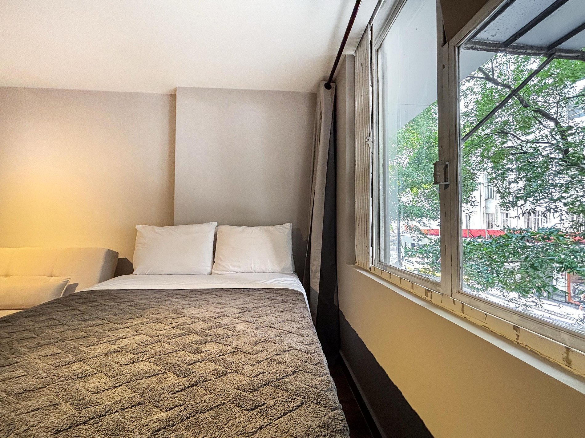 OBS: O apartamento fica no primeiro andar, e tem uma janela voltada para a Rua. Se você tem dificuldade para dormir, ou é sensível a sons urbanos, talvez essa não seja a melhor escolha pra você.