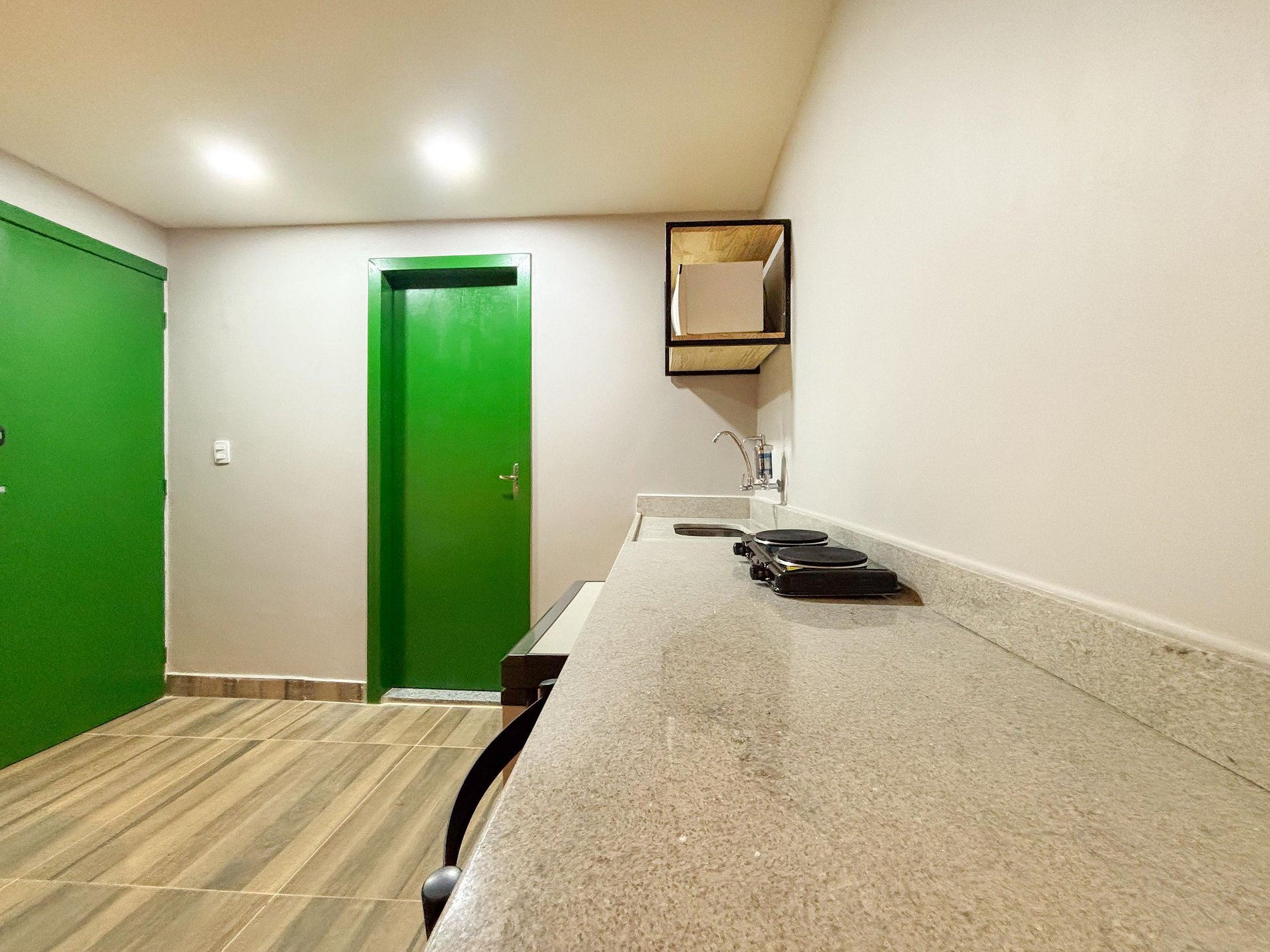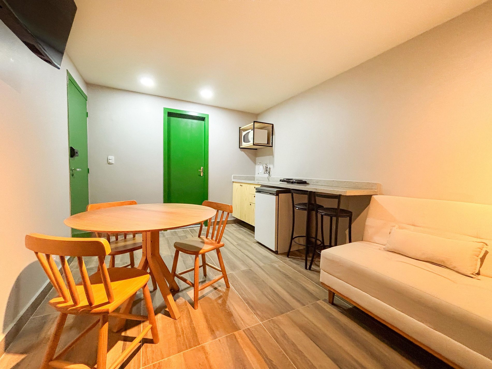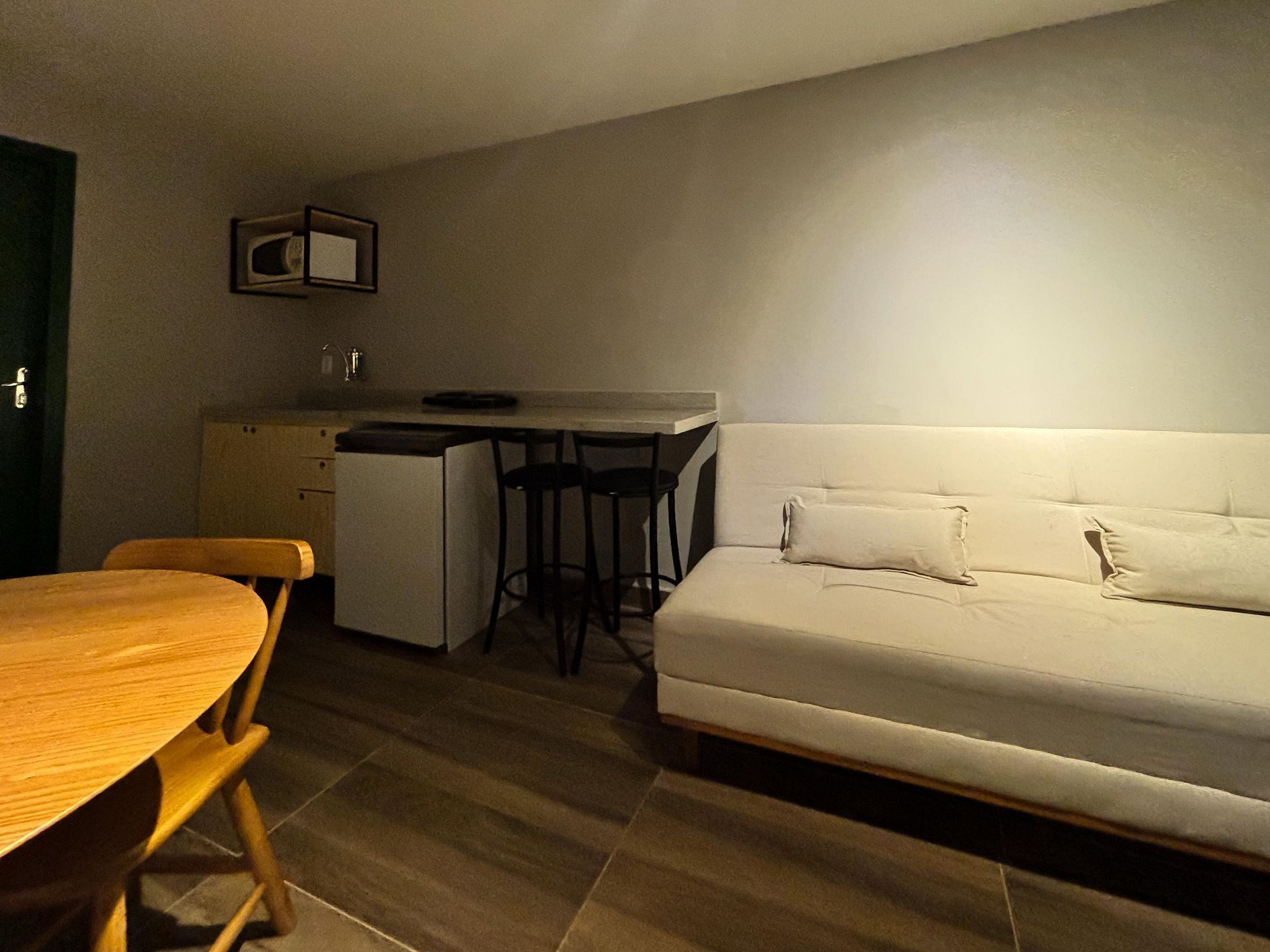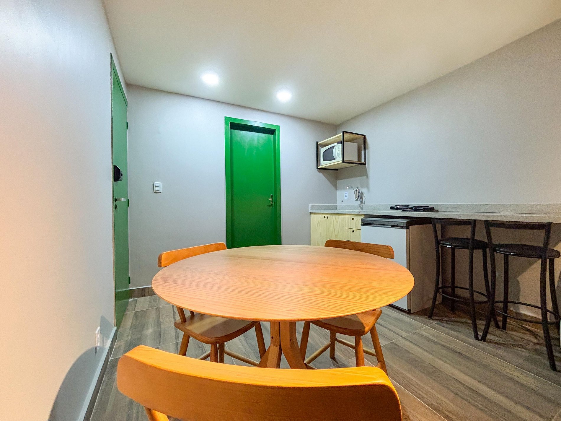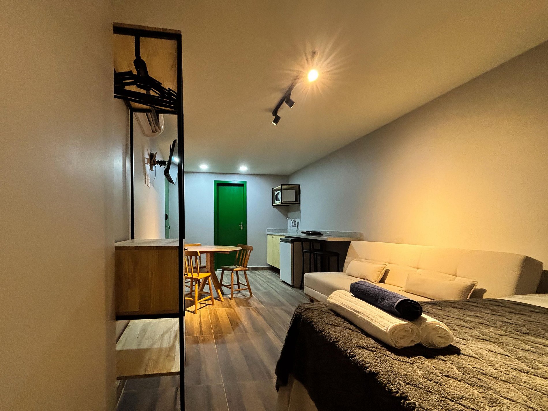 Ao chegar, você precisará acessar uma porta de entrada principal compartilhada apenas com outro studio e, em seguida, entra no seu studio privativo, com acesso individual, fechadura eletrônica e uso exclusivo de todas as áreas internas (quarto, banheiro, cozinha, etc.).