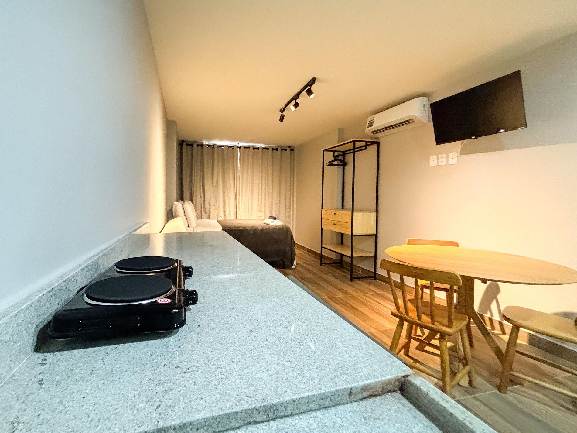 Não há qualquer tipo de compartilhamento de espaço interno — sua privacidade e conforto são totalmente preservados durante toda a estadia. É uma opção funcional e bem localizada, perfeita para quem vem a lazer ou a trabalho.