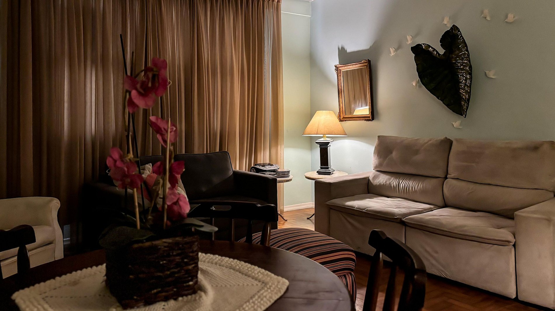 Caso não queiram realizar refeições na rua, não se preocupem! O espaço conta com uma cozinha totalmente equipada, te permitindo cozinhar para o seu grupo durante toda a estadia. Além da cozinha, possuímos uma sala de estar repleta de sofás, uma mesa de jantar de até 4 lugares e dois quartos, sendo um deles uma suíte, comportando ao todo até 7 hóspedes, caso não tenham problema em dormir no sofá cama da sala.