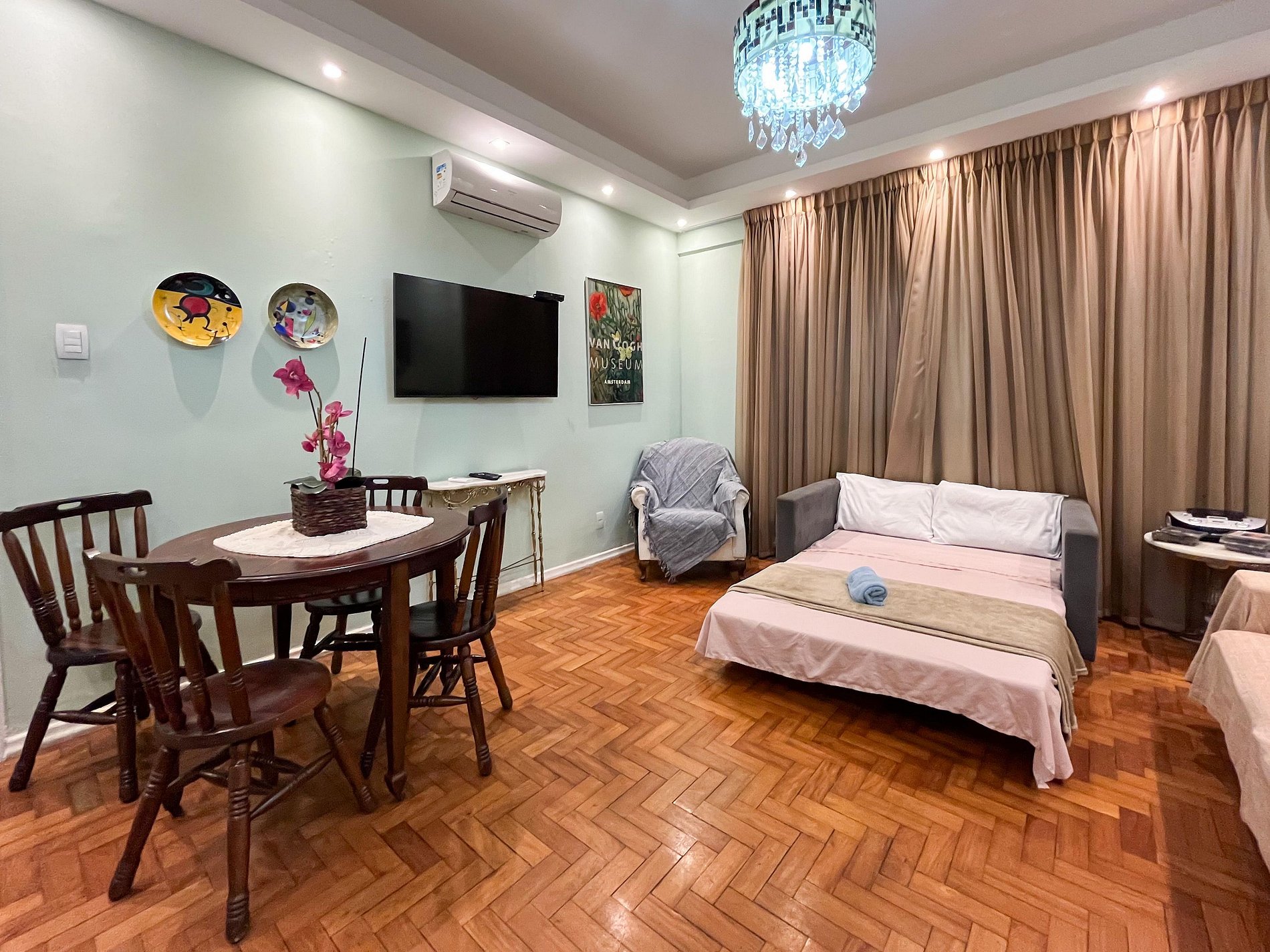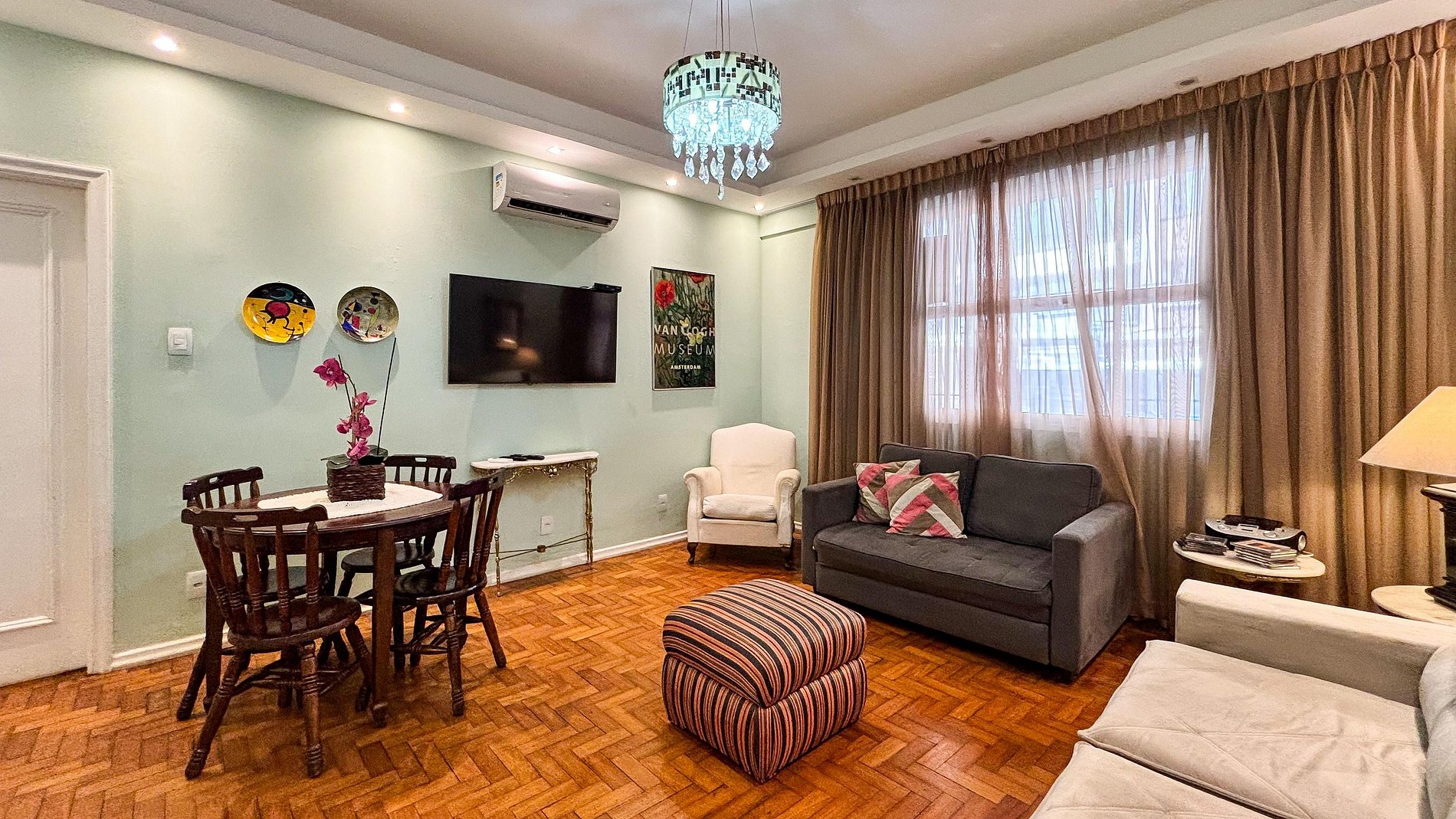 A poucos passos da praia de Copacabana e com fácil acesso ao metrô, esse apartamento oferece praticidade e conforto para até 7 pessoas.