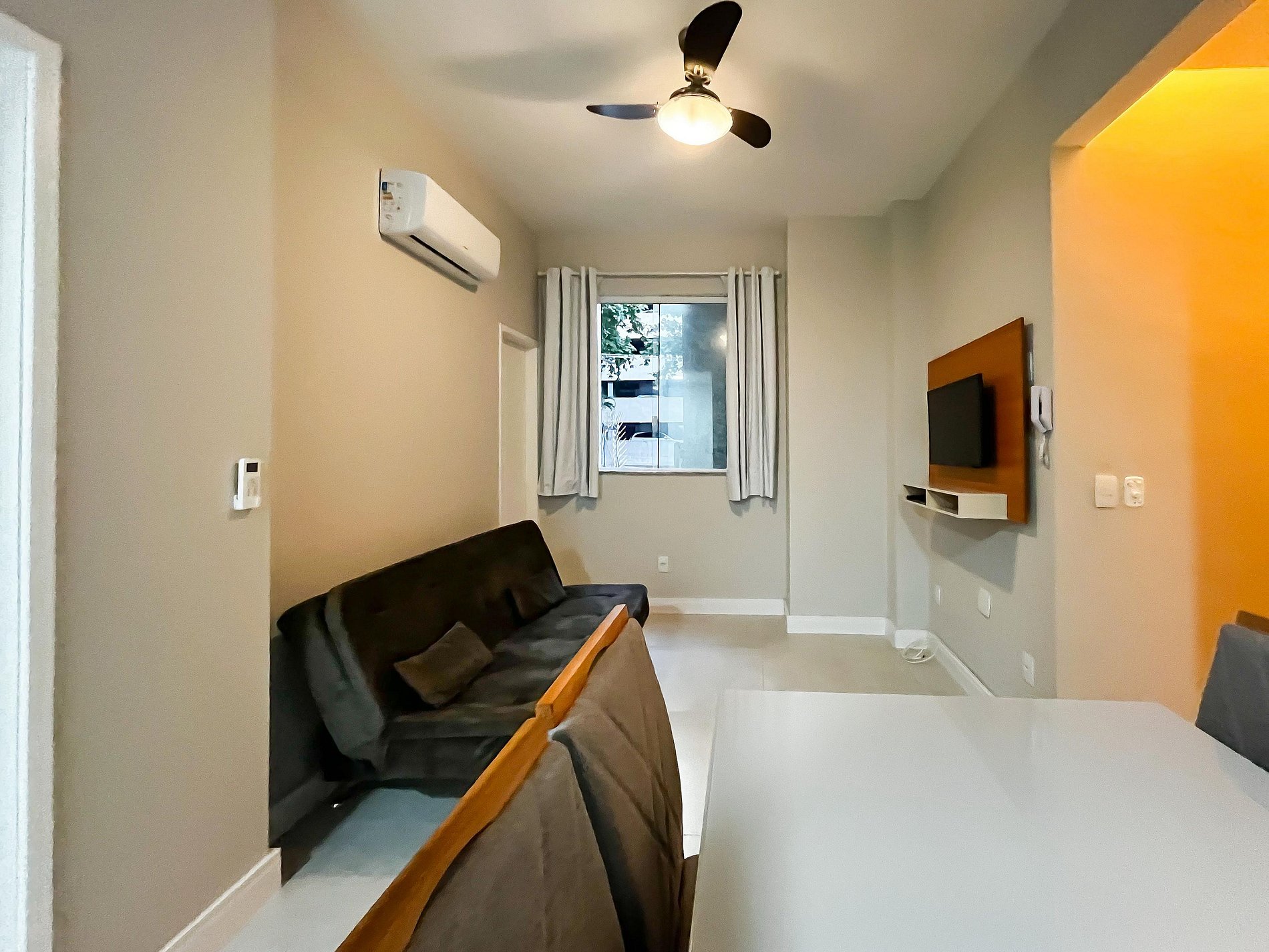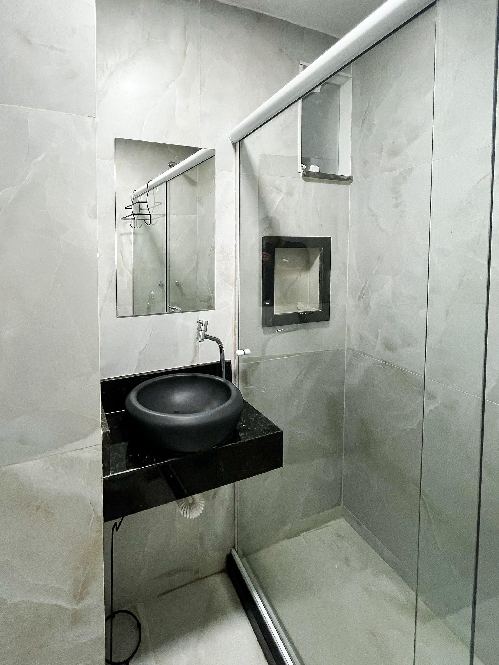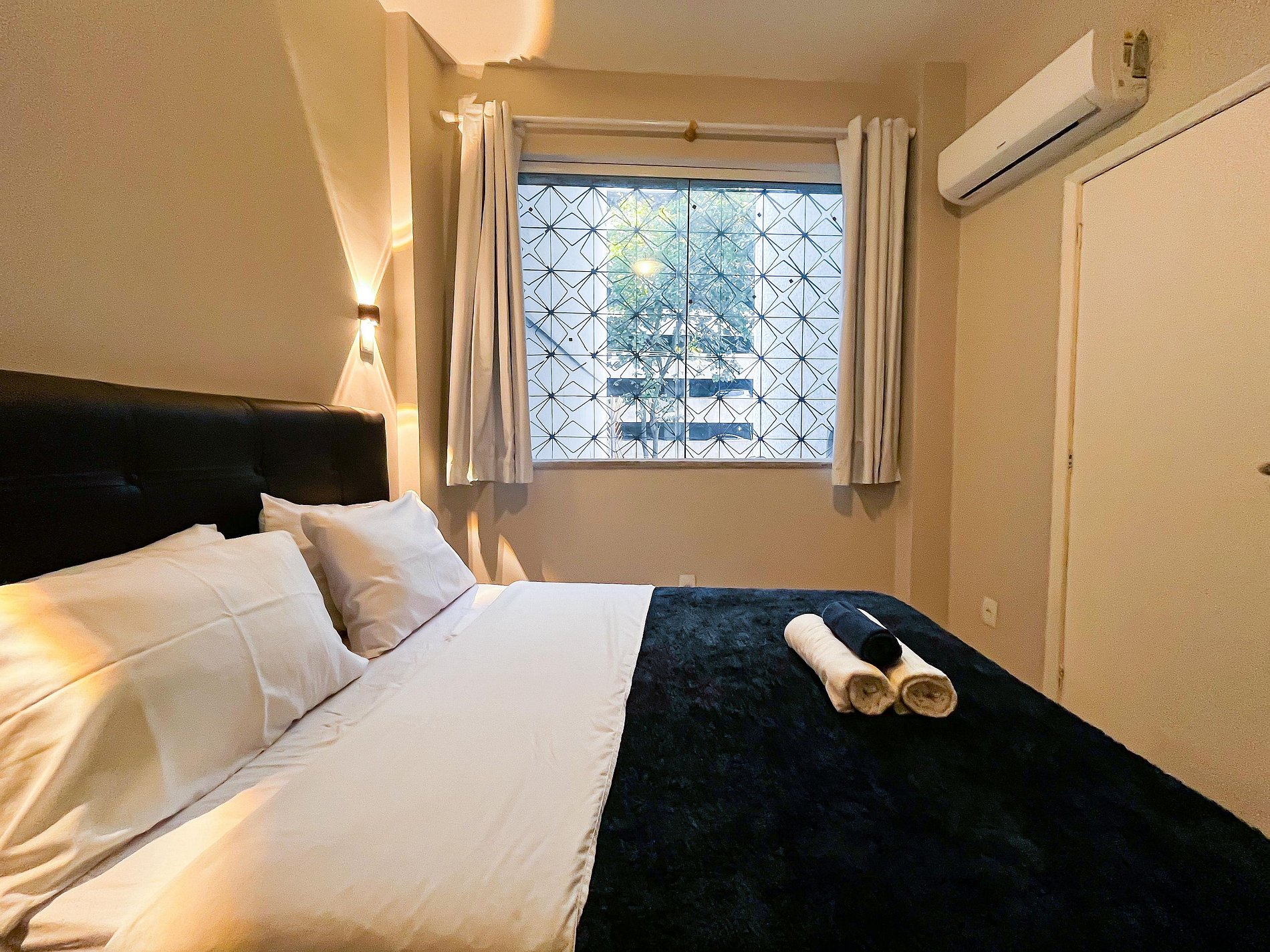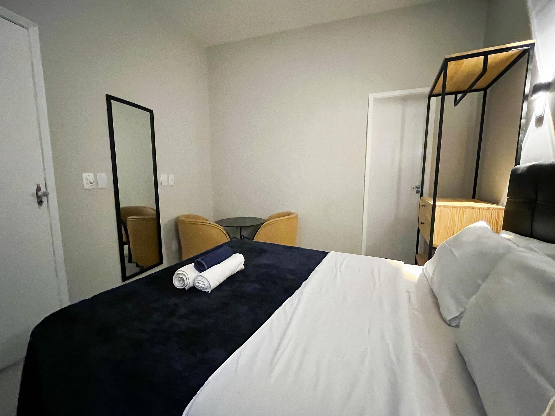 Todos os ambientes foram recém-reformados, com acabamento moderno e funcional, pensado para quem busca uma estadia prática sem abrir mão do bem-estar. (Vale a pena destacar que os banheiros têm dimensões compactas. Para pessoas de um porte maior, o espaço pode ser um pouco justo)