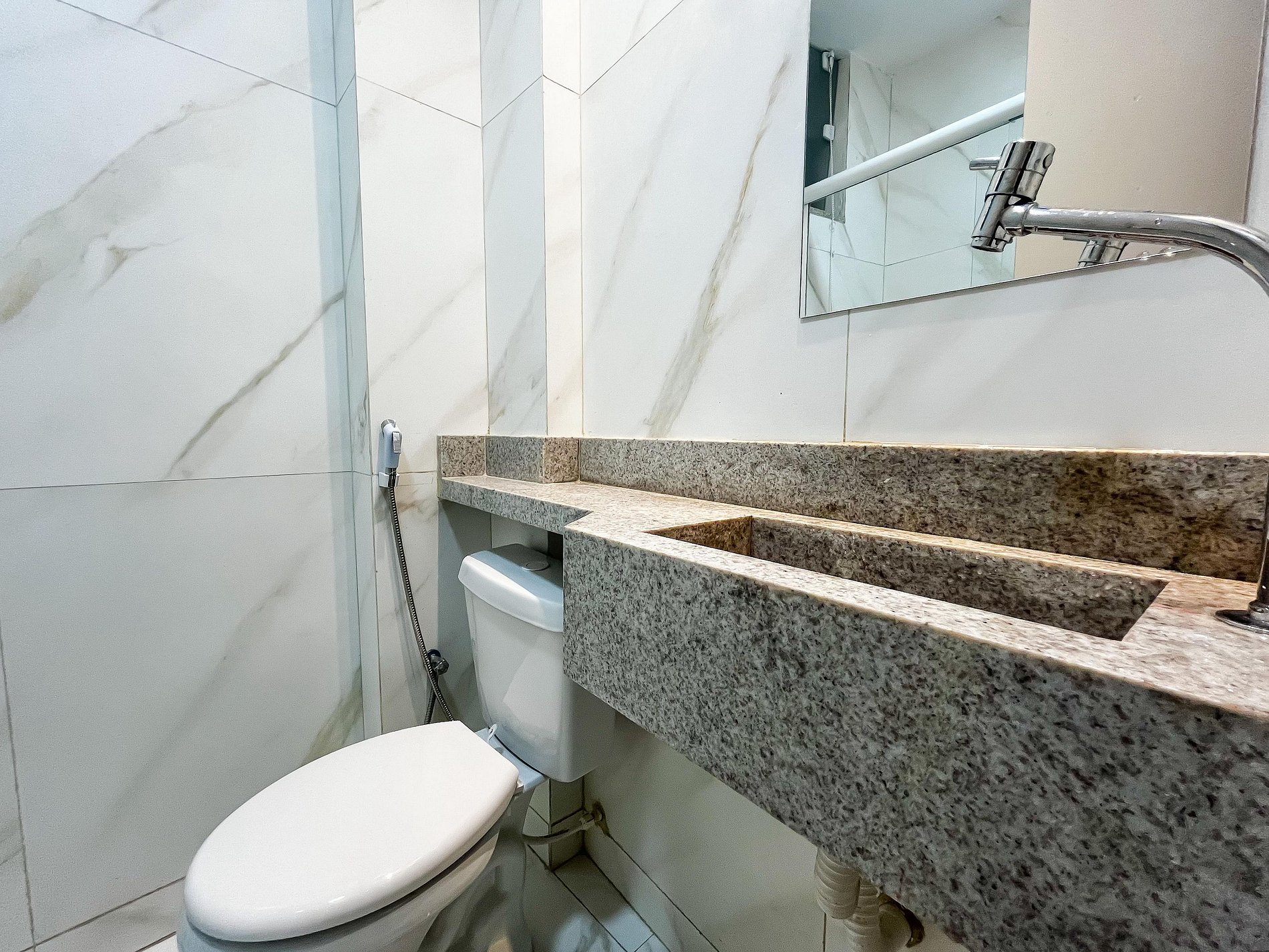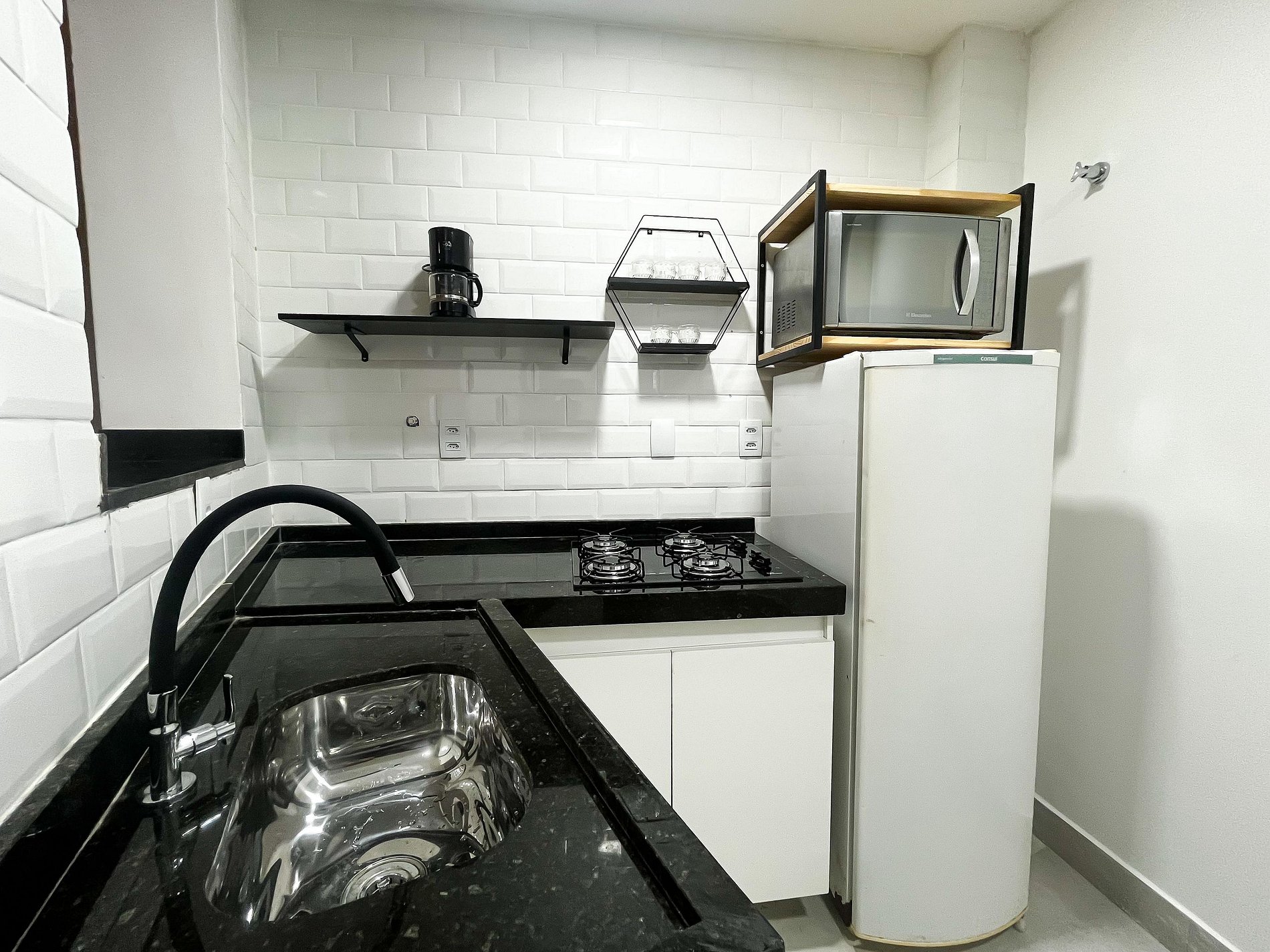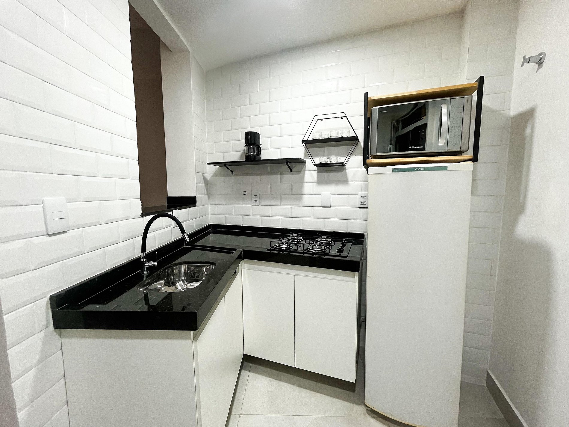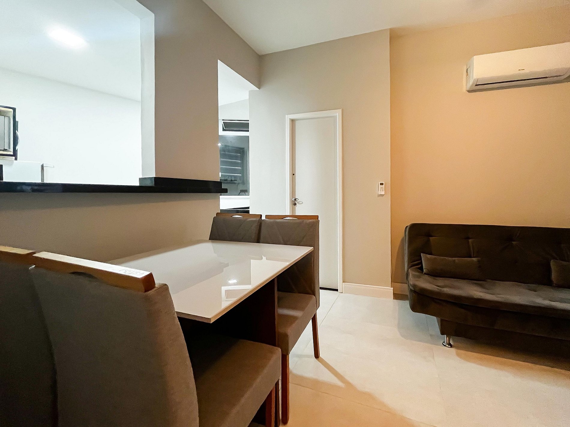 Todos os ambientes foram recém-reformados, com acabamento moderno e funcional, pensado para quem busca uma estadia prática sem abrir mão do bem-estar. (Vale a pena destacar que os banheiros têm dimensões compactas. Para pessoas de um porte maior, o espaço pode ser um pouco justo)